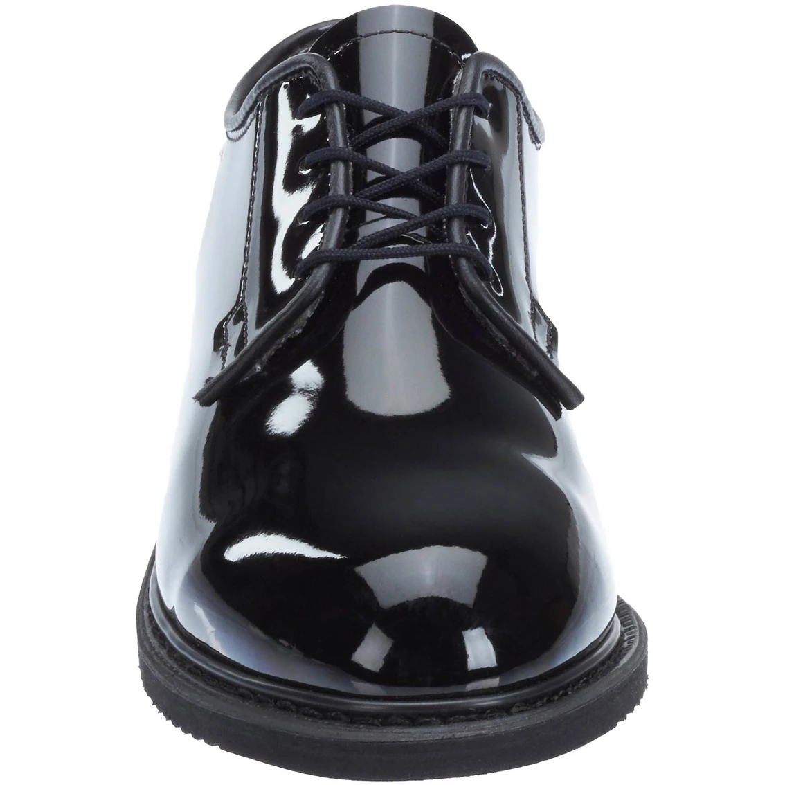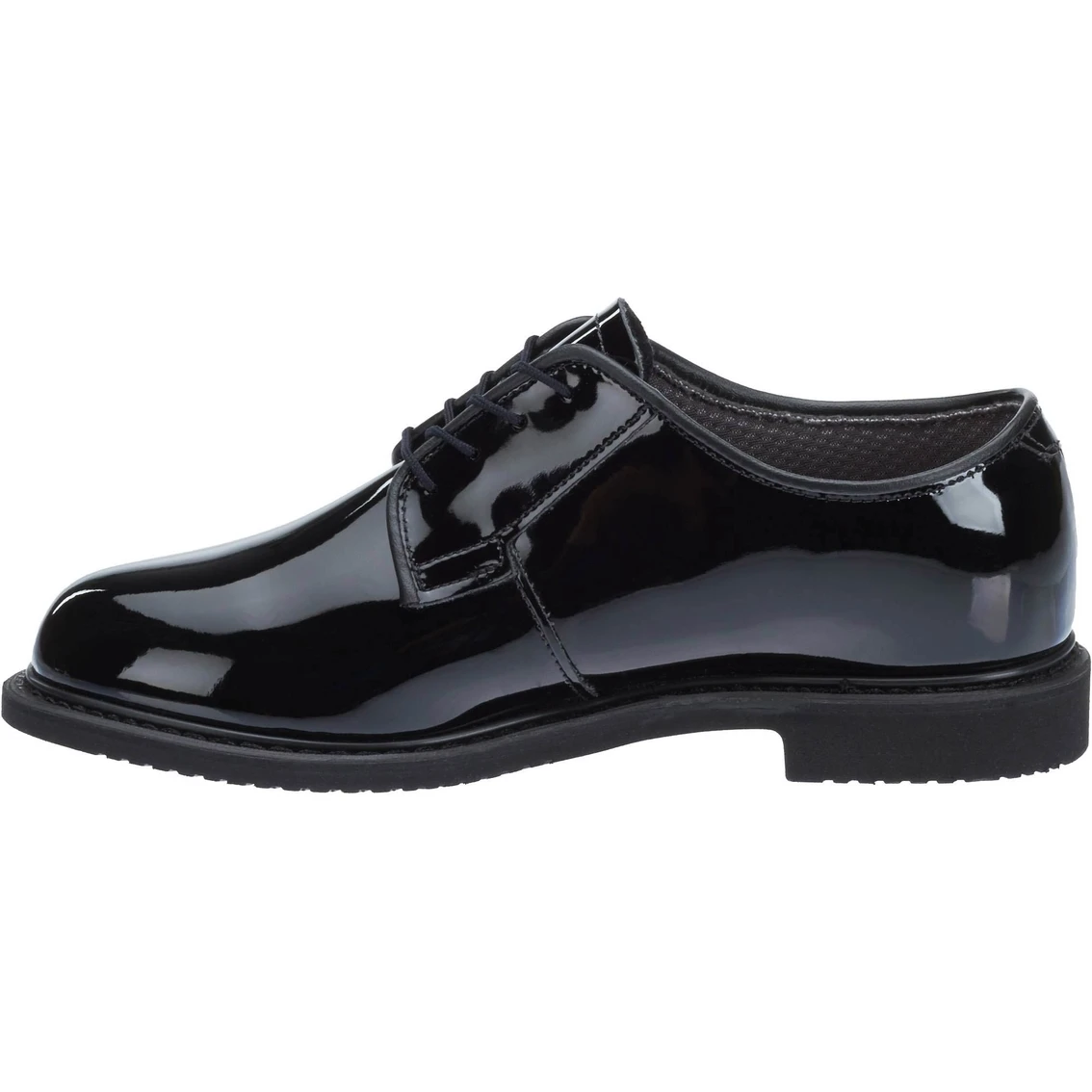 This low maintenance, ultra-comfortable black, high gloss dress oxford is the first choice of women serving in the US military. Featuring a breathable, moisture wicking Dri-Lex lining, easy to clean high gloss upper, cushioned removable insert for extra comfort, a long lasting non-marking Bates Lite outsole and Goodyear welt construction. Made in the USA/Berry compliant.
